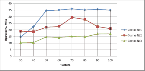 3.3.2 Исследование зависимости прочности при сжатии от частоты