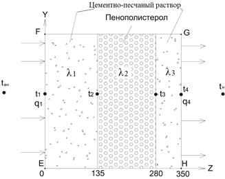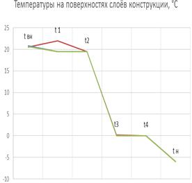 внутренней и наружной поверхностей ограждающей конструкции,°С;ф - средняя за