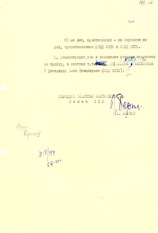 Докладная записка наркома внутренних дел СССР Л.П. Берии И.В. Сталину.