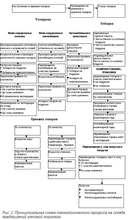 2. Принципиальная схема технологического процесса на складе предприятий оптовой