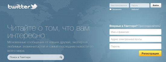 Рис. 2.3 - Начальная страница Твиттера