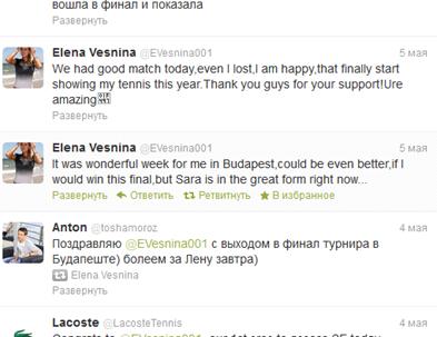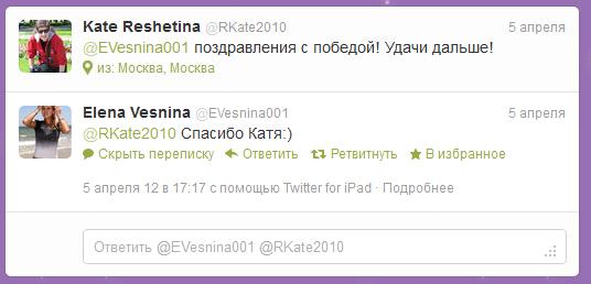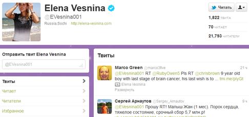 Елены Весниной // Твиттер. - Режим доступа: https://twitter.com/#!/EVesnina001