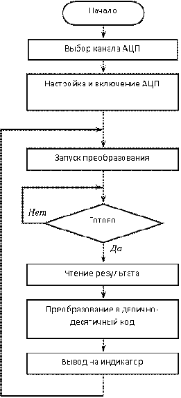 бит в 0. Поэтому ожидание окончания преобразования сводится к последовательному