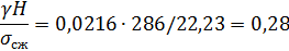 целика b = 3,6 м, высота камеры h = 2,7 м, глубина расположения камеры Н = 286 м.
