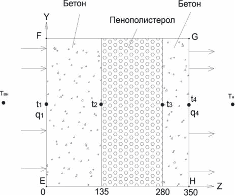 многослойной ограждающей конструкции на физической и компьютерной моделях,