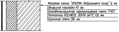 толщиной 380мм, с наружным утеплением Rockwool ВЕНТИ БАТТС, толщиной 100мм.