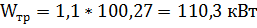 где Ктр =1,1 коэффициент потери мощности трансформатора.
