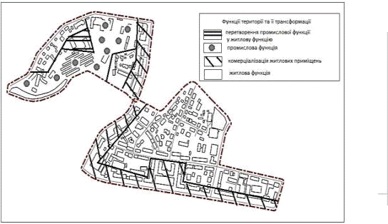 замінапромислової функції на обслуговування населення, при цьому дифузійні