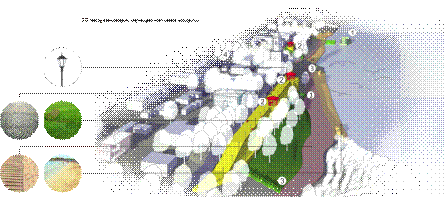 путём создания прогулочных, активных и рекреационных зон в несколько уровней с