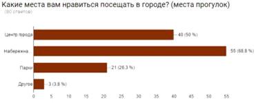 . Какие места Вам нравится посещать в городе?