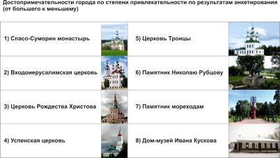 . Расставьте достопримечательности города по степени
