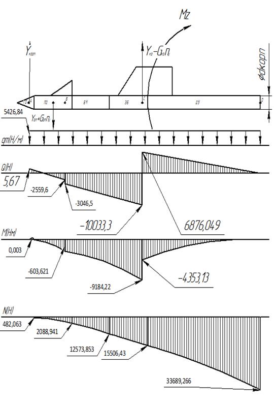 Эпюры действующих нагрузок