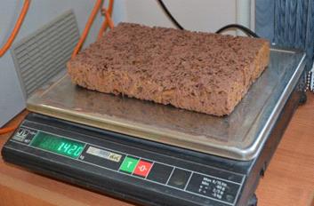 Рисунок 5.2 - Взвешивание образца щепоцементной плиты Velox в сухом