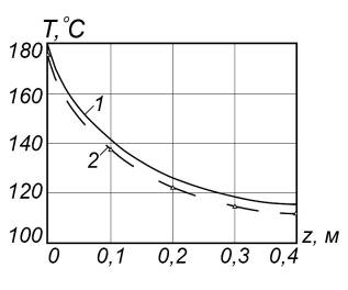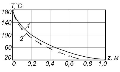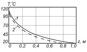 Рис. 2.2.9. Рассчитанная (1) характеристика температурного распределения