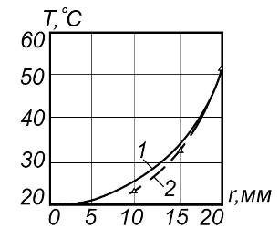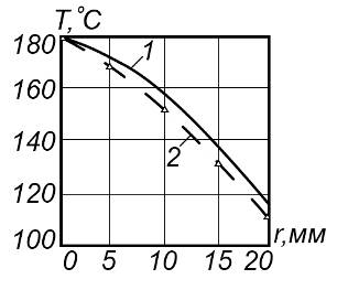 Рассчитанная (1) характеристика температурного распределения по радиусу