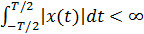 . Функция x(t) абсолютно сходится в пределах периода, т.е.,