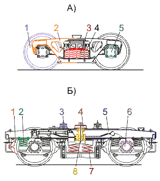 динамічні навантаження від рами візки й передають їх до обертових осях вагона.