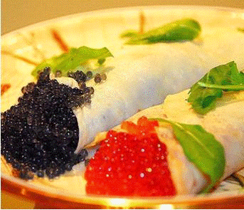 повара пекут блины, оладьи дополняя их рыбой, икрой, сметаной, декорируют