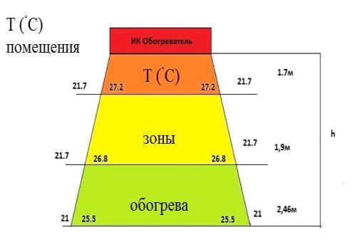 1,9 м, 2,46 м), перпендикулярно ИК обогревателю температура на