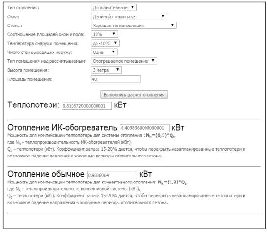 Расчет мощности инфракрасных обогревателей;
