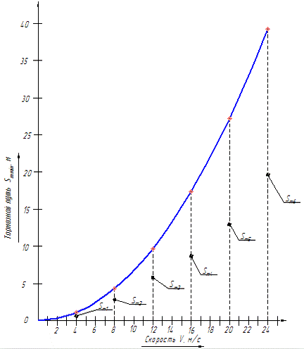 где j-коэффициент сцепления (j=0,75)[2]; Vi -текущая скорость