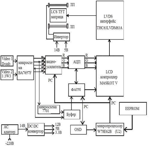электрических и структурных схем узлов и блоков ЖК монитора, а так же