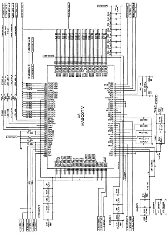 восьмиразрядные цифровые сигналы основных цветов. LCD-контроллер на микросхеме MASCOT V выполняет функции масштабирования