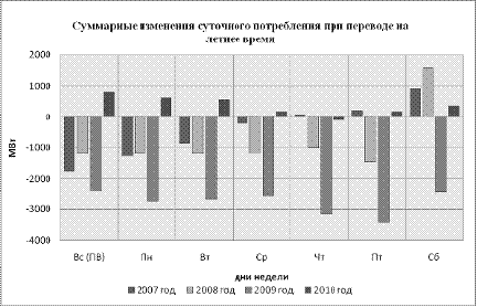 электроэнергии при использовании летнего и зимнего времени, анализ полученных