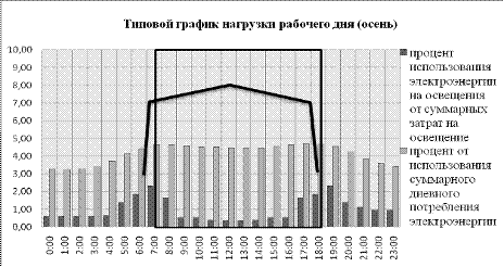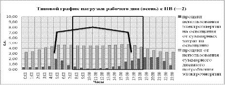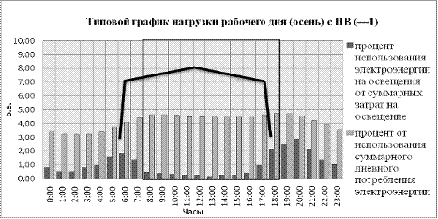 часов -увеличение доли естественного освещения. Доля затрат электрической
