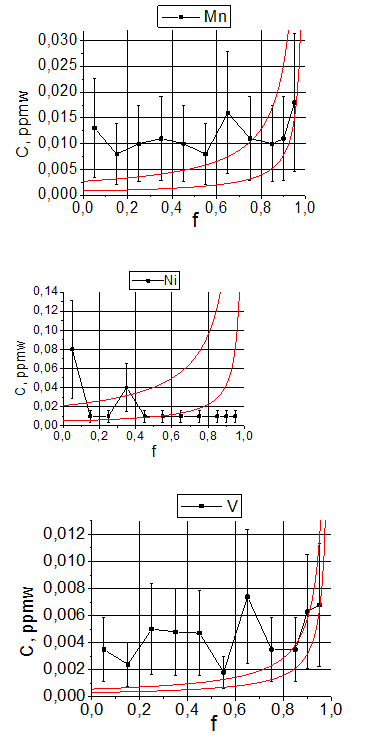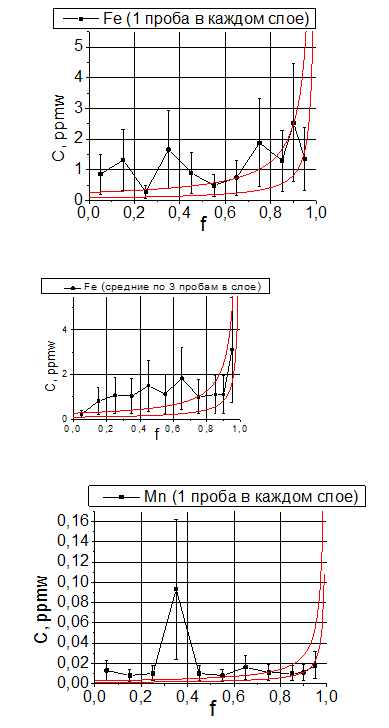 концентраций примесей в слитке №2 (в ppmw