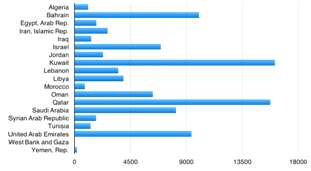 Потребление энергии на Ближнем Востоке и Северной Африке в расчете на