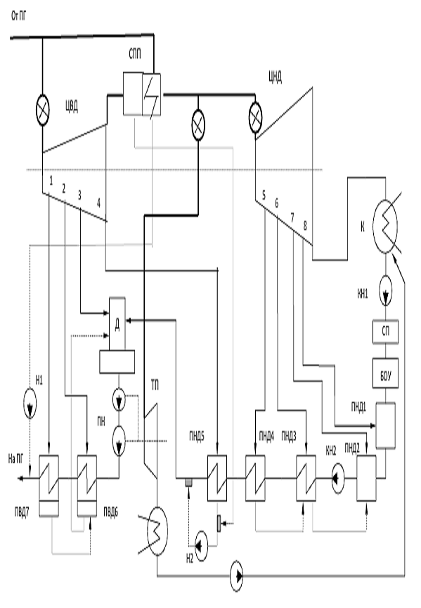 живильної води, а також відносні витрати робочого тіла по елементах схеми турбоустановки.