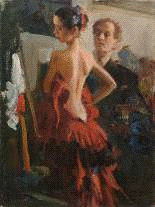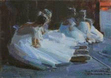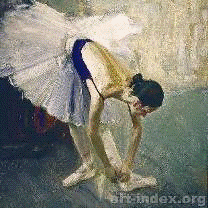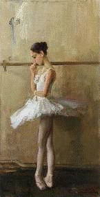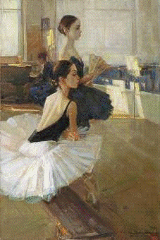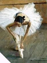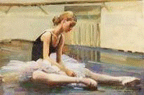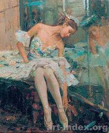Братанюк В.И. Балерина, завязывающая пуанты.Х. м. 2002.50х50.