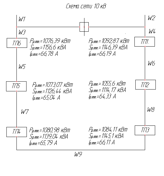 напряжением 10 (6) кВ, содержащих ТП и линии, соединяющие ЦП с ТП и ТП между