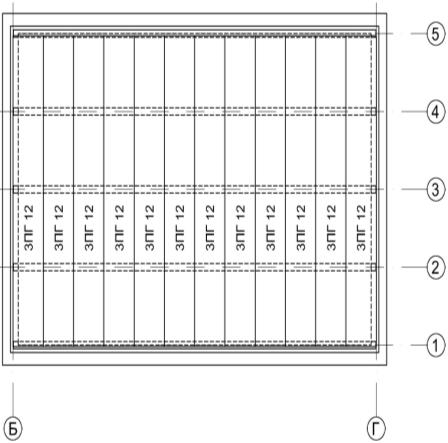 опирается на несущие кирпичные стены. Раскладка плит покрытия представлена на