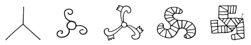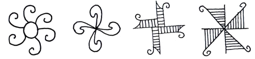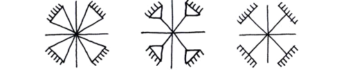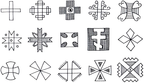 косий хрест, прямий хрест, а також лівосторонню і правосторонню свастики. В