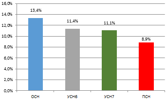. Расчет налоговой нагрузки при различных режимах налогообложения