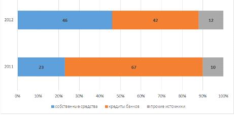 инвестиций финансировались за счет кредитов, а 2012 году их доля снизилась до