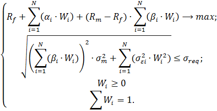 Выполняя данное условие, ставится вопрос о построении портфеля, который