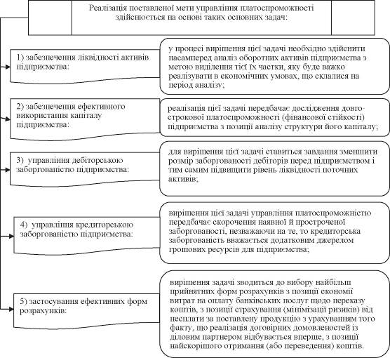 мети управління платоспроможністю здійснюється на основі вирішення ряду задач