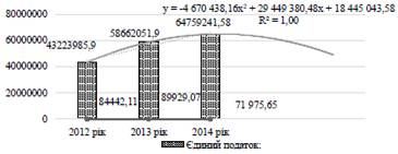 від їх надходжень за допомогою лінії тренда. Так, як за останніх 3 роки маємо
