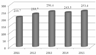 України засвідчили тенденцію до зростання у 2015 році, вони становили 253,4