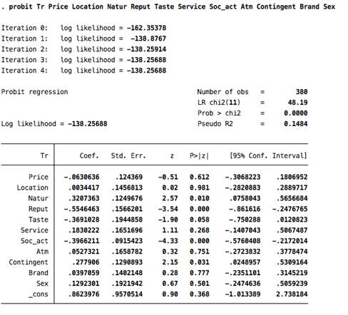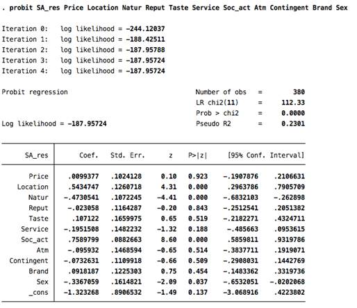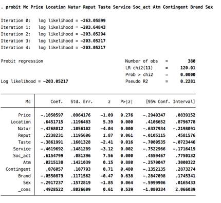 Приложение 3. Пробит модель McDonalds
