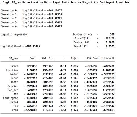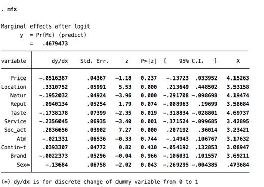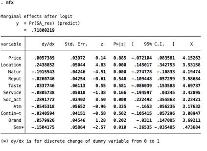 повышает вероятность посещения данного ресторана на 28%. Следовательно, первая