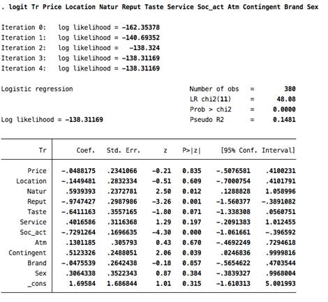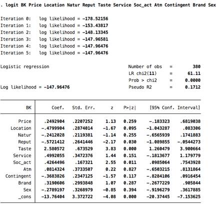 Приложение 5. Логит-модель Burger King
