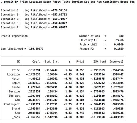 Приложение 6. Пробит-модель Burger King