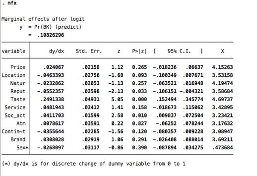 Приложение 7. Предельные эффекты Burger King