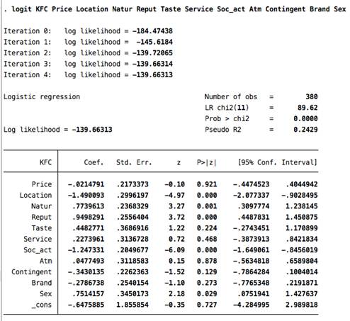 Приложение 8. Логит-модель KFC