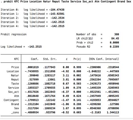 Приложение 9. Пробит-модель KFC