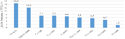 Рисунок 1.1. Сравнительная характеристика доли туризма в ВВП стран с